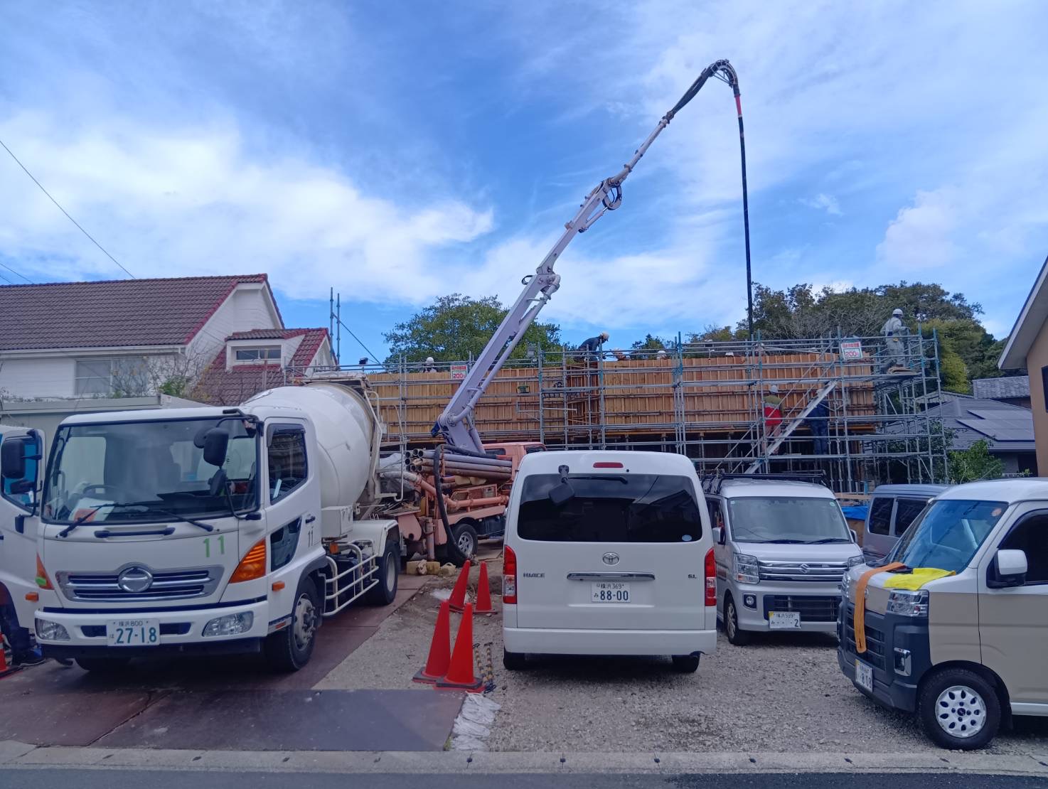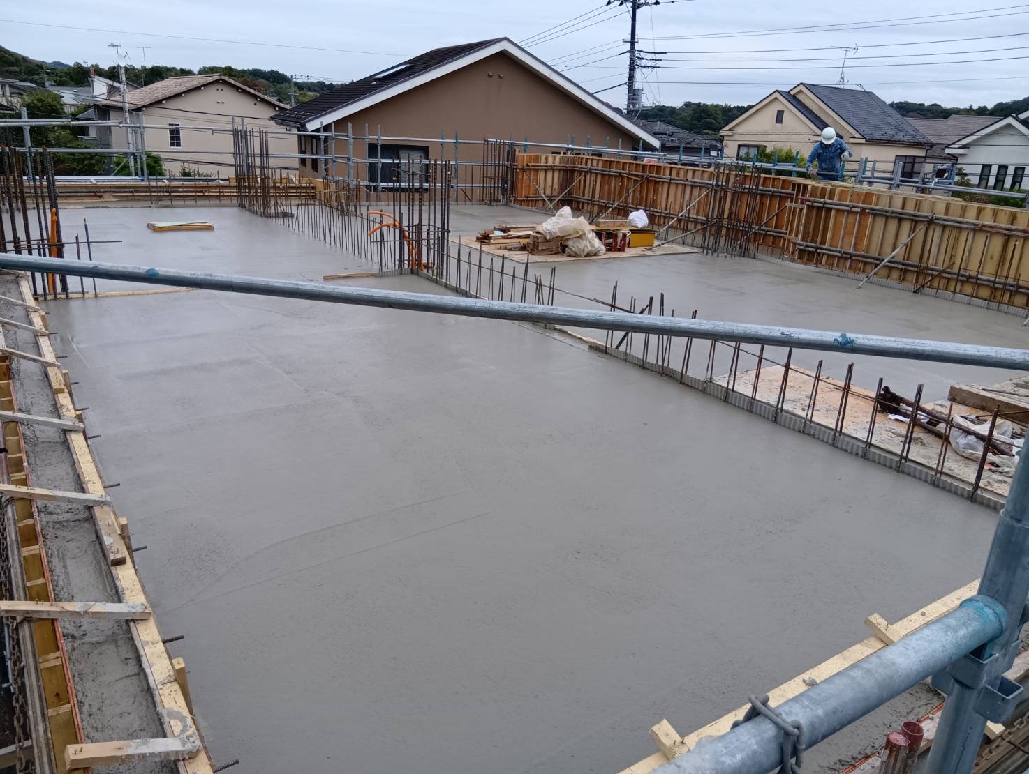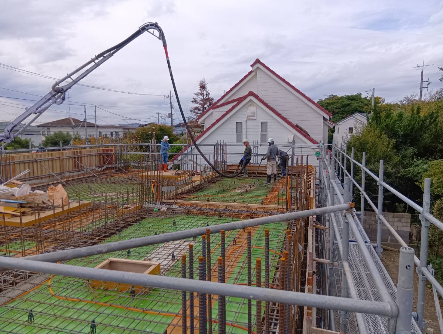 1階の天井=2階の床までの配筋を完了し、コンクリートの打設工事が始まりました。