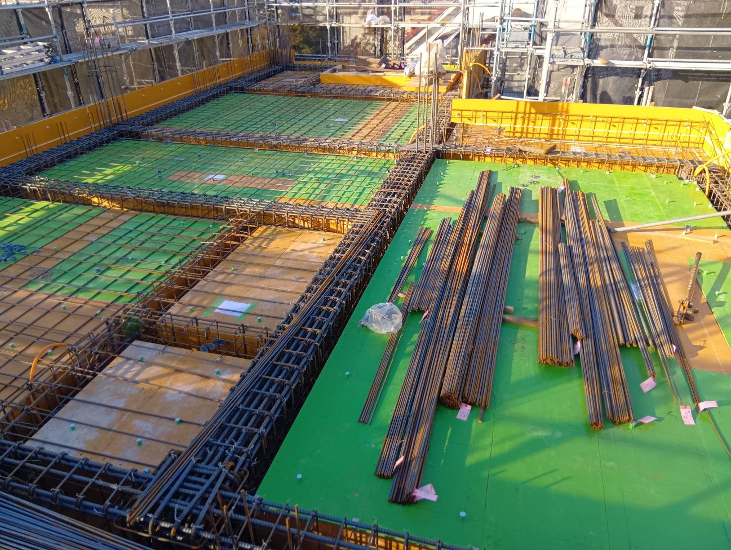 2階の天井にあたる型枠を設置し、配筋工事へ進みます。
