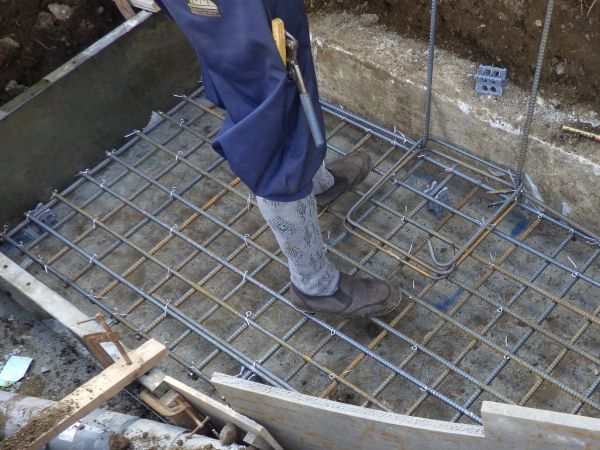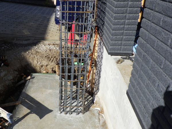 これは何かというと、シャッターゲートを支える柱の配筋を行い始めたところです。