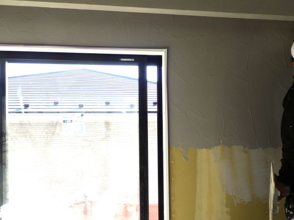 塗り壁の仕上げ方には、扇仕上げとか櫛引など、様々なパターンがありますが、こちらはオリジナル。