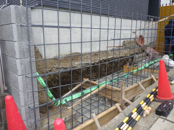 それはそれとして、配筋の向こう側に白い建材が設置されています。