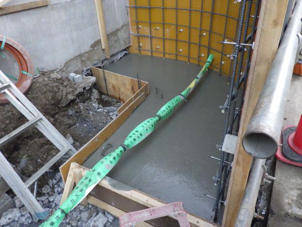 左手の擁壁は、今回の工事の早い段階で造っていたものです。