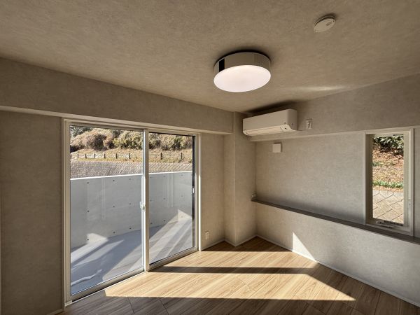 こちらの居室には、奥行き18㎝の浅めな棚を3段づつ設置しています。