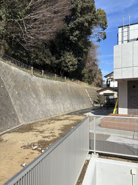 がけと建物の間にそれ相当の距離が必要ですし、そのためだけの塀なのに、多大なコストも手間もかかります。