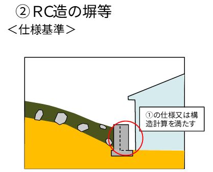 「想定される土石流の高さや衝撃力に応じて定められた仕様を満たす鉄筋コンクリート造の外壁等を設けること」。