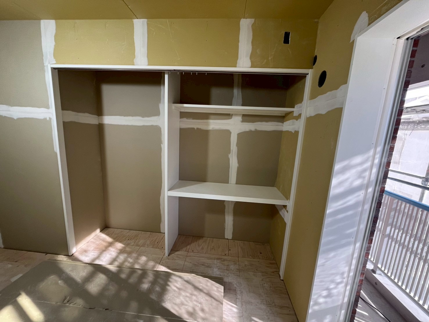 白い枠が立ち上がって、クローゼットのカタチに仕上がりました。
