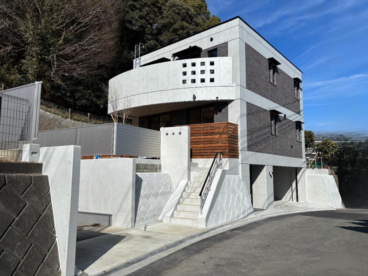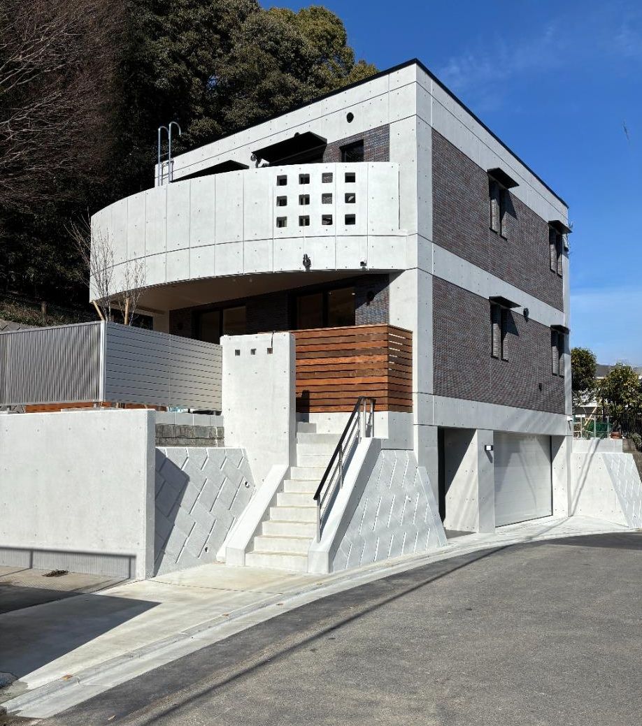 南に相模湾を望み、西に小高い山のある約200坪の敷地に建てた、地下車庫のあるRC住宅です。絶好の立地でしたが、土砂災害特別警戒区域に指定され、着工までに高いハードルをクリアする必要がありました。