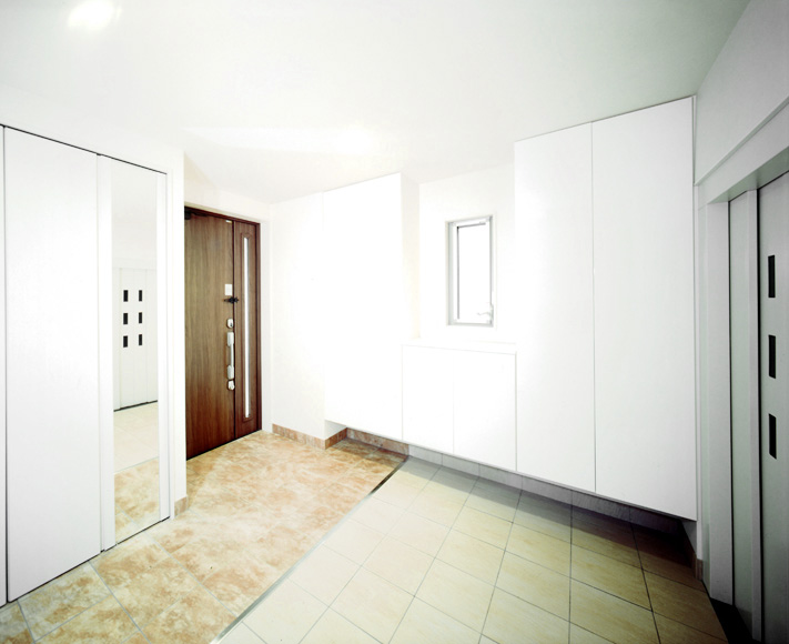 デザインはコンクリートとコントラストが小さい土色のタイルをあえて選び、自然の風合いから品格が感じられるように設計しました。