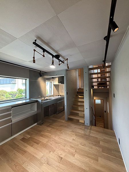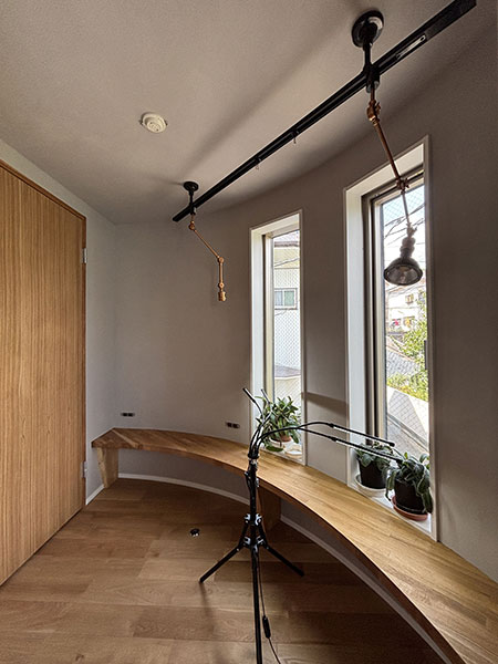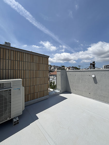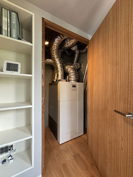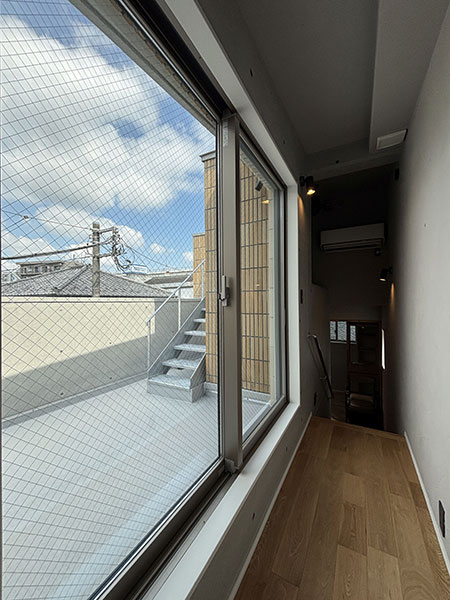 もう1つは、夏冬を快適に過ごすため、外断熱工法を採用し、湿度も交換する全熱交換型換気システムを採用しました。スキップフロアの複雑な構造に、大きな設備と配管を設置するのにも、難渋しました。