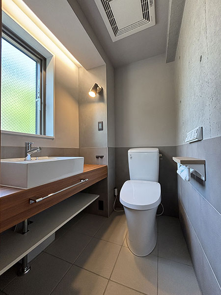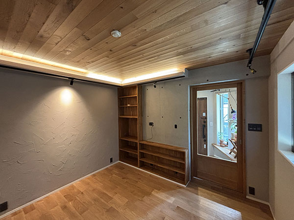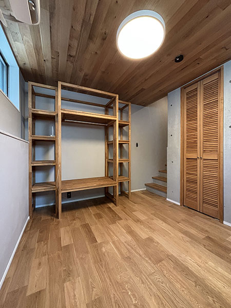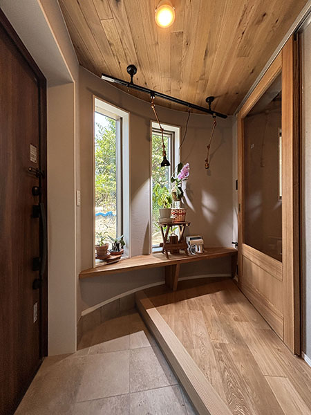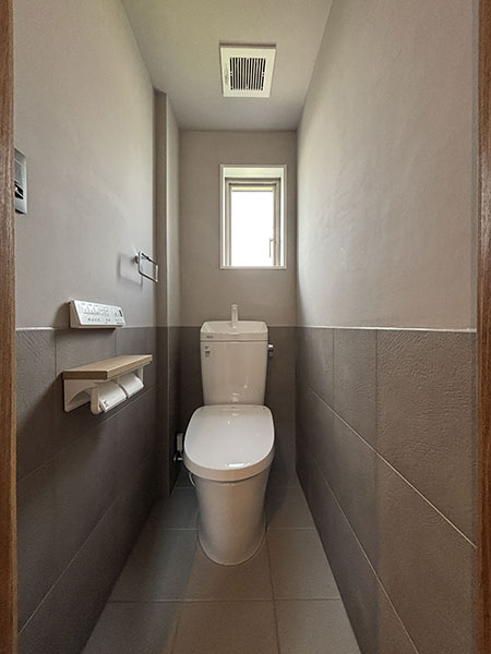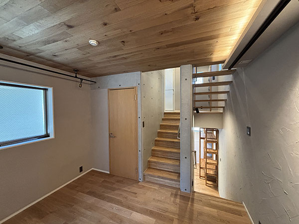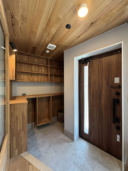 それら諸問題を解決し、床や天井には無垢材を、壁は打ちっぱなしと珪藻土の塗りで、外壁は全面タイルを採用した、ハイスペックなお住まいに仕上がりました。