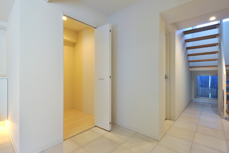 年齢を重ねてから三層の階段の上り下りがきつくなった時のために、各フロア同じ位置に納戸を設け、将来エレベーターを設置できるような準備もしてあります。