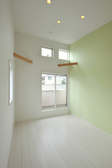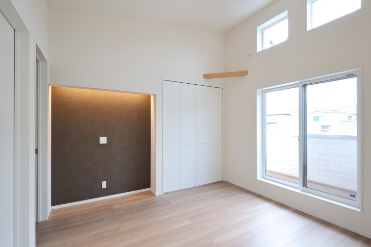 2階は、主寝室、個室、ゲストルームを集めたプライベートフロア。各部屋にアクセントウォールを設け、印象的な内装に仕上げています。