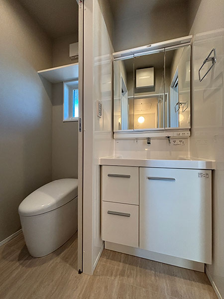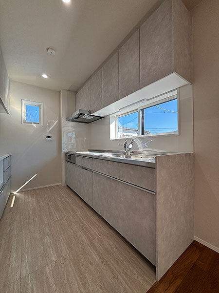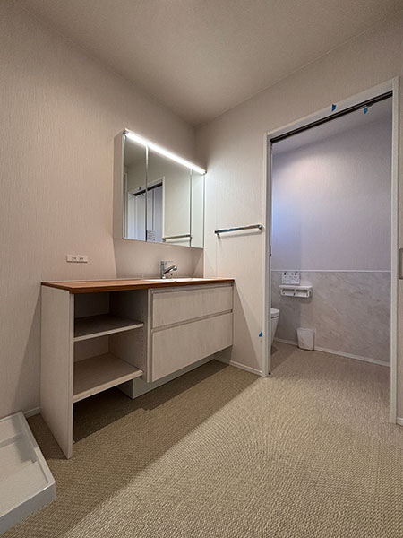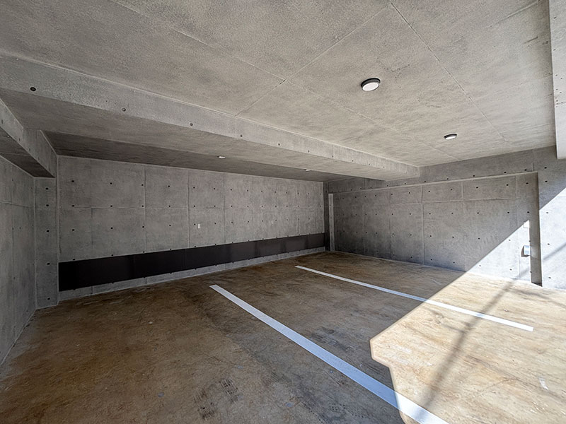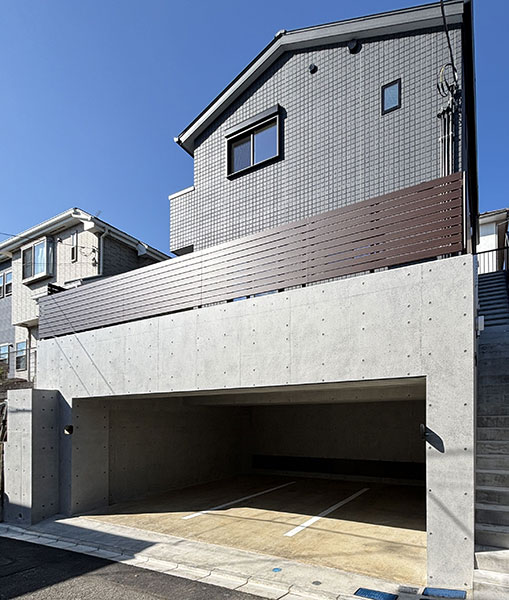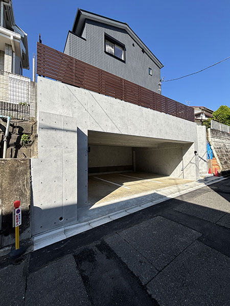 運良く、2方向の道路に接道していることもあり、1階で平屋のように暮らし、2階を賃貸する賃貸併用住宅をご提案し、ご縁をいただきました。擁壁を造り替えるなら、地下も有効活用しましょう、と3台分の地下車庫も確保しています。将来、社会的に電気自動車がスタンダードになる可能性もあるため、充電設備なども設置しやすいように備えています。