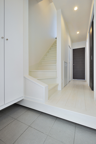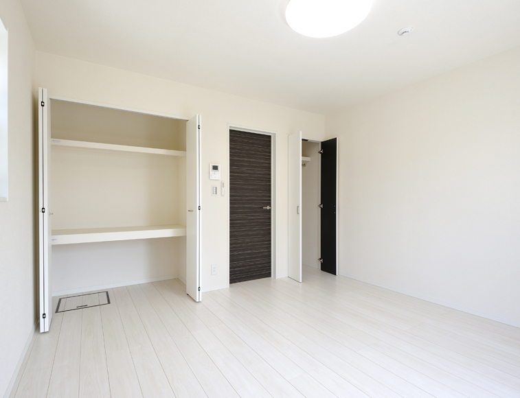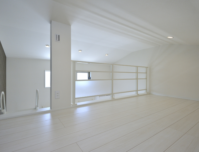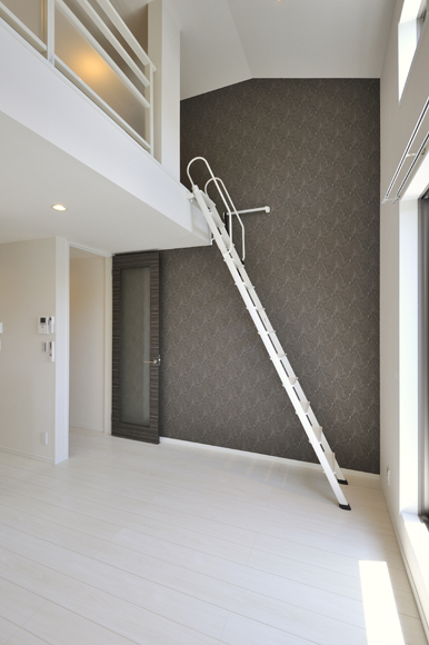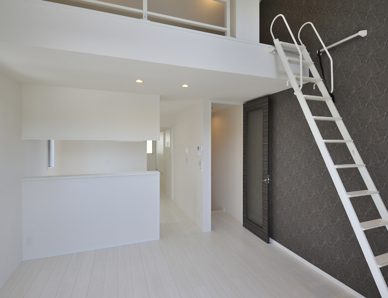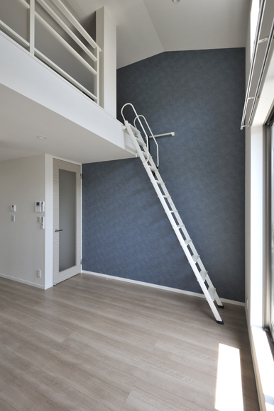 ロフトがあるために高くなっているリビングダイニングの壁にはアクセントウォールを取り入れ、印象的な空間に仕上げています。各居室や廊下、階段下等、できるだけ収納スペースも設けました。