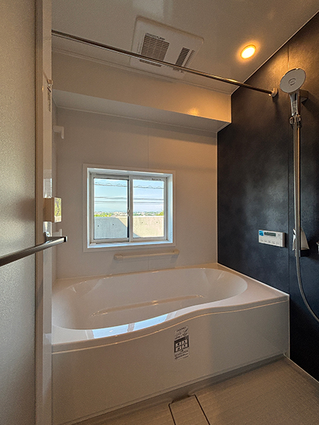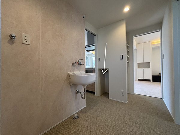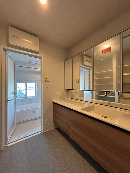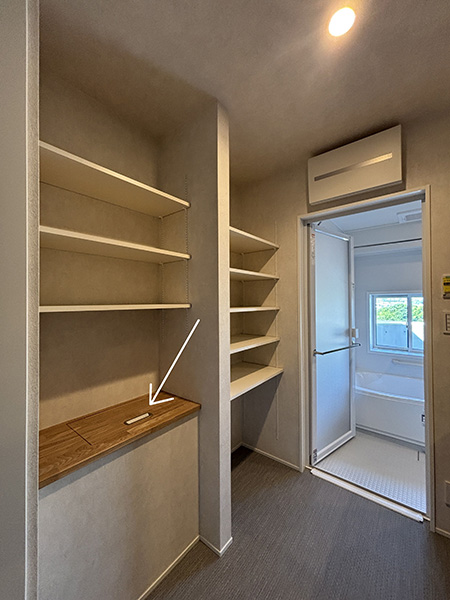 西側に望める富士山の眺望を入浴しながら楽しむために、浴室を2階に。一方で、LDKやランドリールームは、1階の方が便利。スムーズな家事動線を実現するため、ランドリーシューターを設置しました。