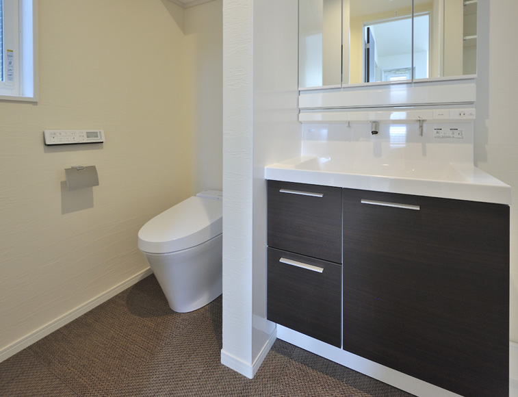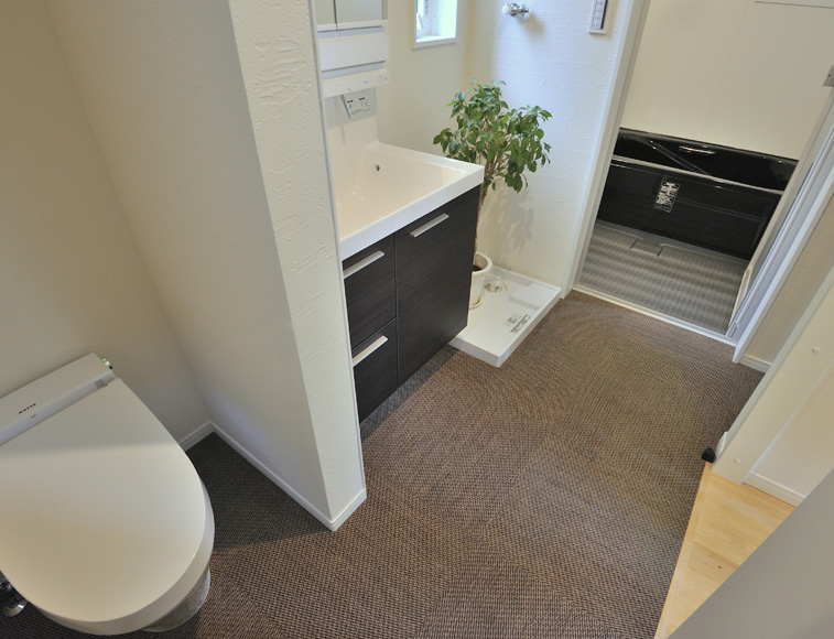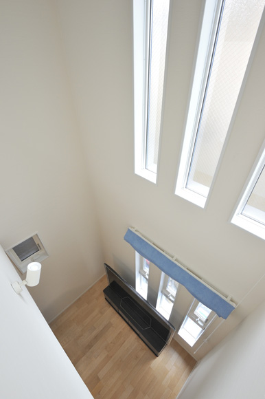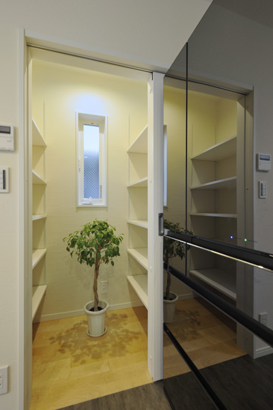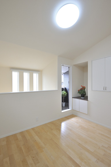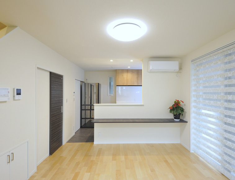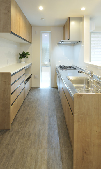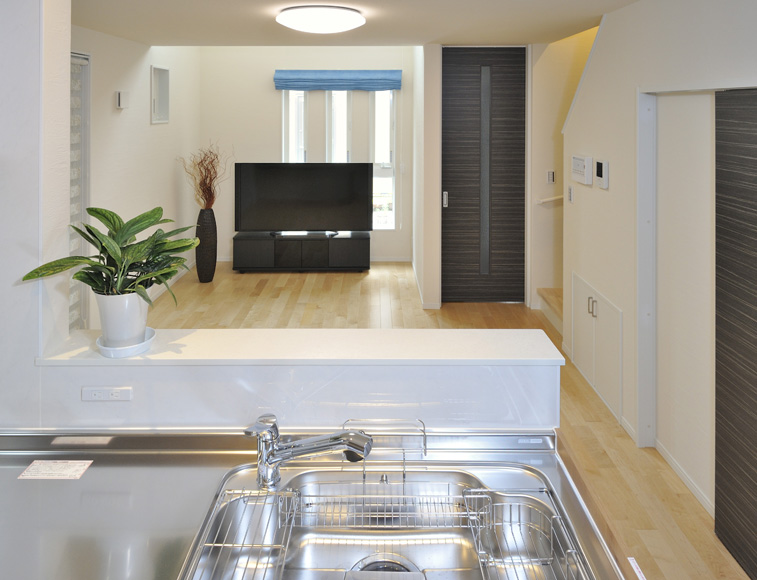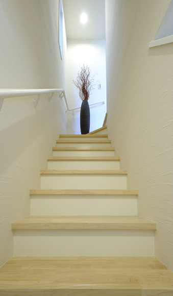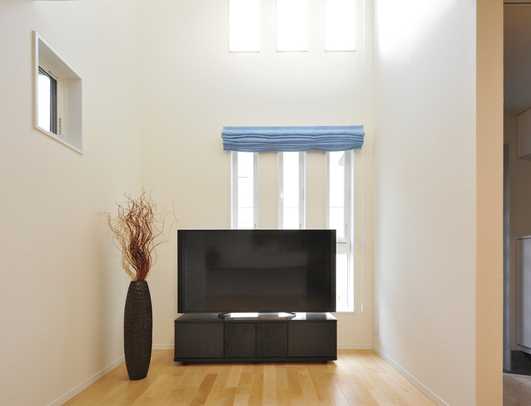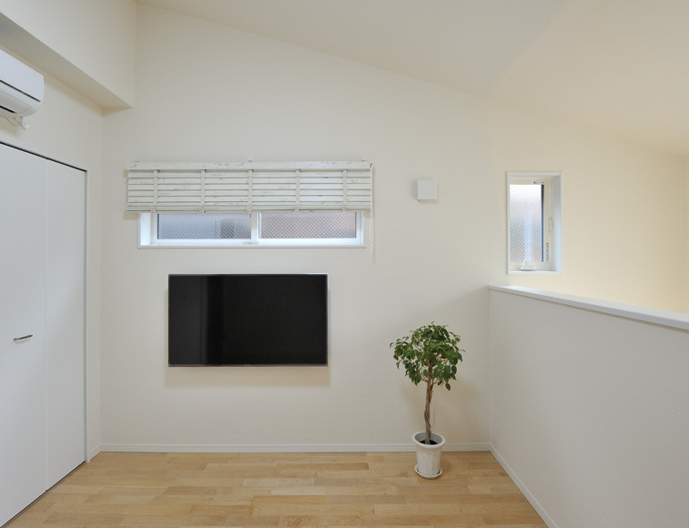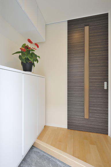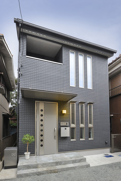 前面道路が4mに満たない、42条2項道路(みなし道路)に建てた注文住宅です。マンションにお住まいだったご夫婦は、住宅性能が高いRC造の快適な暮らしを変えたくない、との思いから当社にお声がけいただきました。計画してみると、RC造で施工するには前面道路が狭く、負担が増えることが予想されたため、見た目も、強度も、快適性も遜色のない、パワーボードでの家づくりをご提案しました。