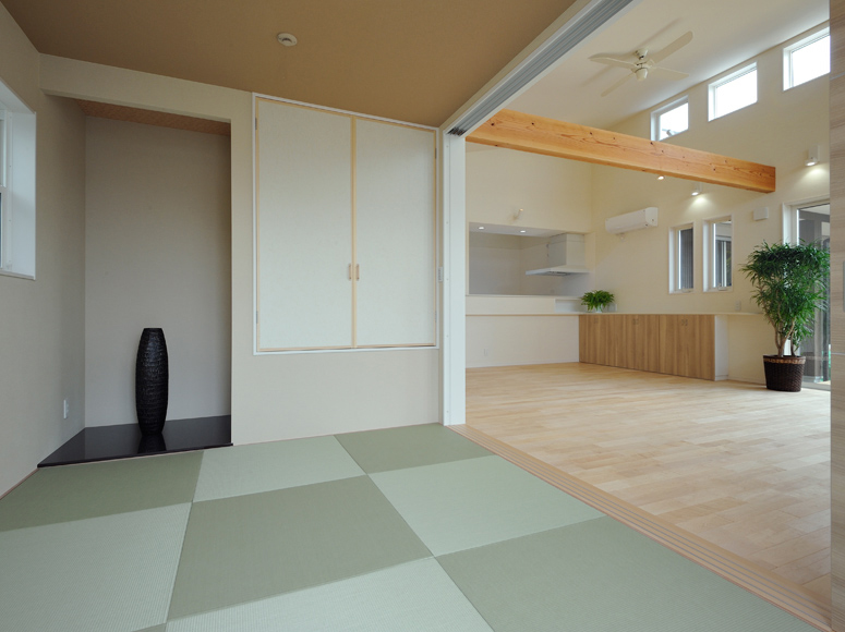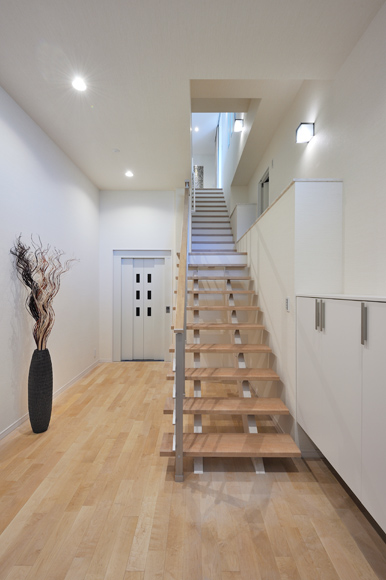 富士山を見渡すスポットは敷地の南東に特等席を設けました。S様にも、『平屋建ての方がこれからのことを考えると確かに暮らしやすい』と受け入れていただけました。地下から1階への階高は通常の1.5倍ほどにもなるので、階段の他にエレベーターも設置しました。効率的で使い易い収納スペースを確保するため、生活導線をイメージしながら、適材適所に納戸や物入れを用意しました。