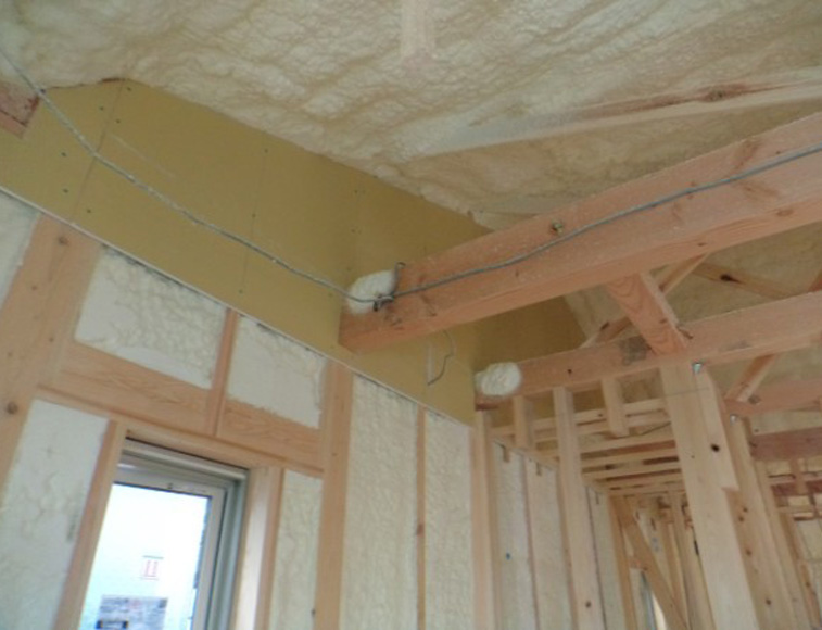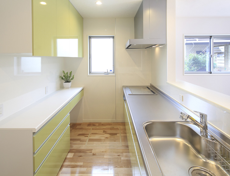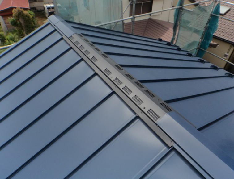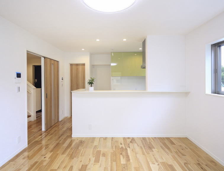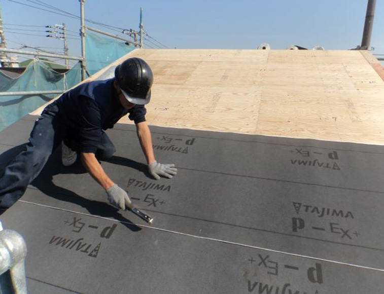 当社の協力会社さんからご紹介をいただいたお客様の家づくりです。交通の便の良い商店街に面するブロックにあった旧家を、建て替えることになりました。利便性が高く、建物が立ち並ぶ立地でしたので、火事が起きた場合の延焼を防ぐよう、準防火地域に指定されていました。そのため、軒裏から燃え広がりやすい室内の壁や、バルコニーの床面などは、延焼を遅らせるために不燃材料で覆い、延焼した際に煙突のような役割を果たしてしまう通気層には、炎の熱で通気口が溶けると、自動的にバンパーが閉じて空気の流れを遮断する特殊な部材を使っています。