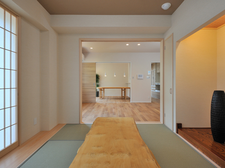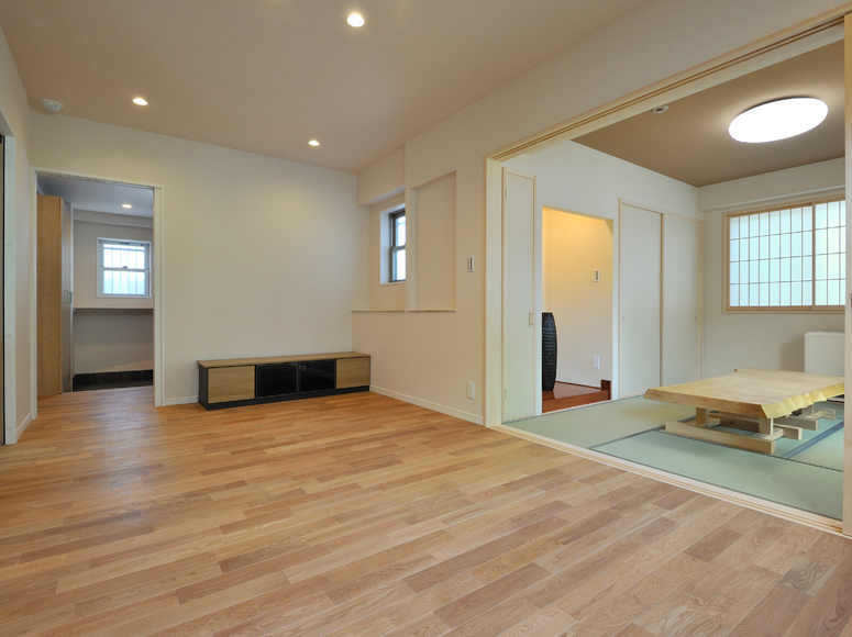 将来は二世帯住宅として住むこともできるように、お風呂やトイレを上下階に用意しました。キッチンは先行配管だけ行っておき、必要になればシステムキッチンを増設できるようにしてあります。RC住宅は地震等の自然災害に強いのはもちろん、上下階の音の問題も解消するので、二世帯で暮らすことになってもマンションと同じように気兼ねなく暮らすことができます。